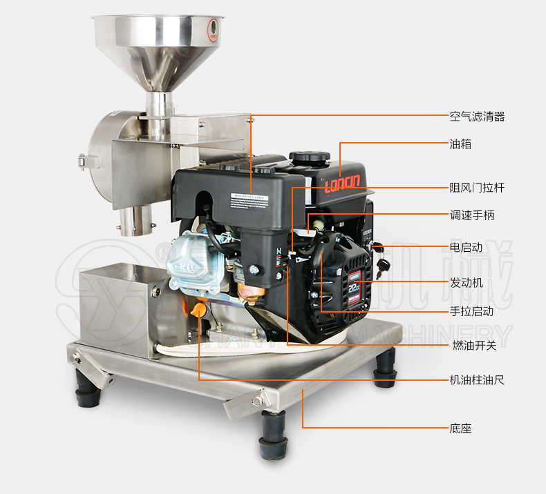 商用五谷杂粮磨粉机特点:汽油机动力马力大,磨盘180型以上在磨粉操作中不容易卡机暴机现象,商用五谷杂粮磨粉机要求速度快,磨粉精细度达到200目以上才算合理要求,可以磨粉各种五谷杂粮和中草药材比较坚硬的原料,特别是中草药材根茎和坚果如木瓜、桔梗、咖啡豆、葛根、首乌等比较坚硬的果和根茎要充分打成粉否则食用粗糙有颗粒物影响口感。